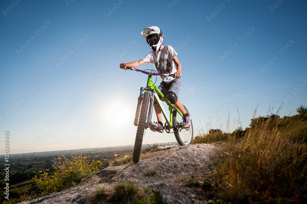 Male bicyclist in helmet and glasses riding on the mountain bike Very well made.