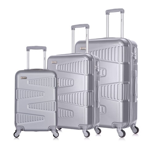 Senator Hard Case Suitcase Trolley Luggage Set of 3 For Unisex ABS Lightweight Travel Bag with 4 Spinner Wheels KH1075 Silver White Very well made.