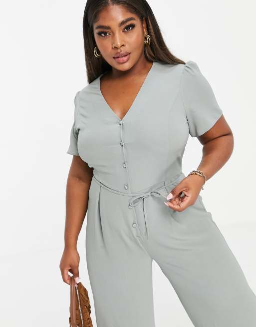 ASOS DESIGN curve bubble crepe short sleeve tea culotte jumpsuit in sage Very well made.