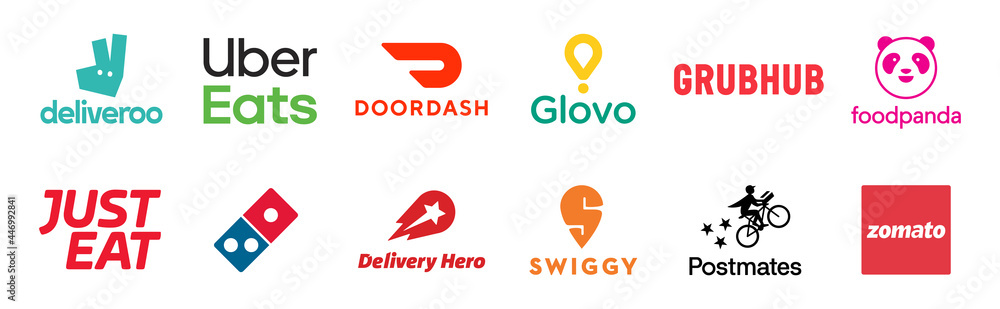 Food delivery service logos company Deliveroo Uber Eats Very well made.
