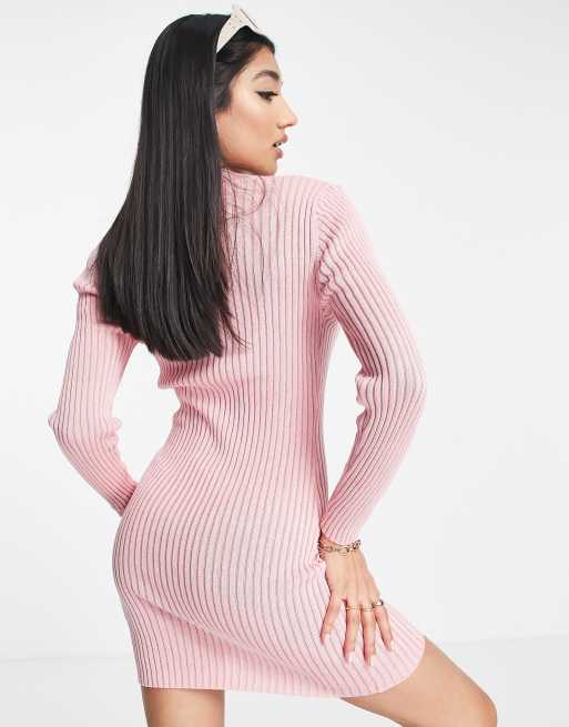 Wednesday s Girl high neck rib jumper dress in pink Very well made.