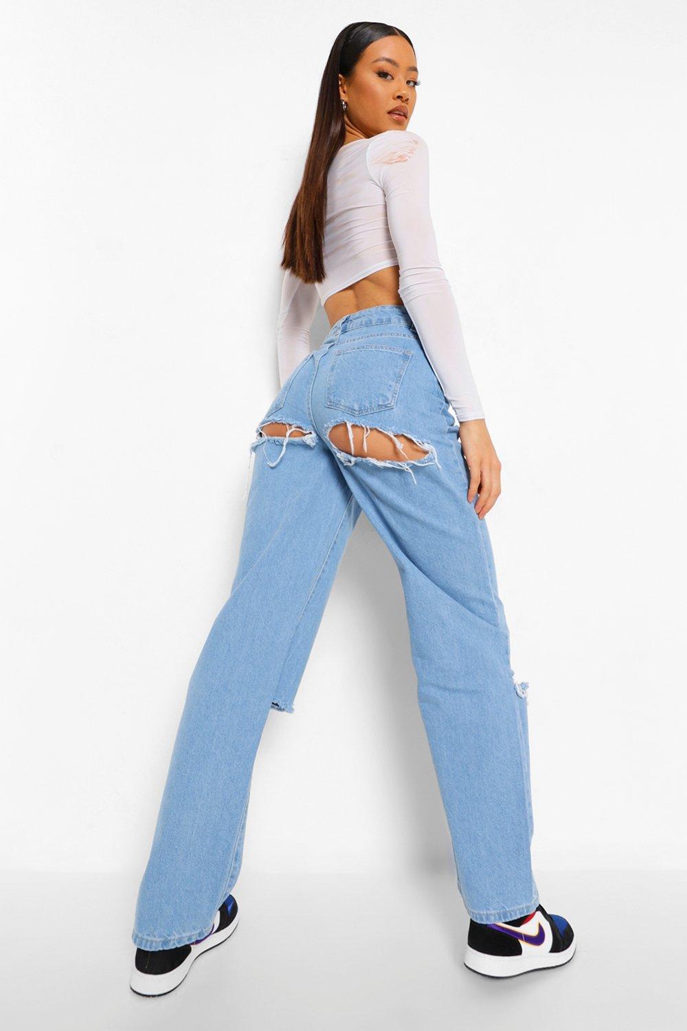 Women s Extreme Bum And Knee Rip Baggy Boyfriend Jeans Boohoo UK Very well made.