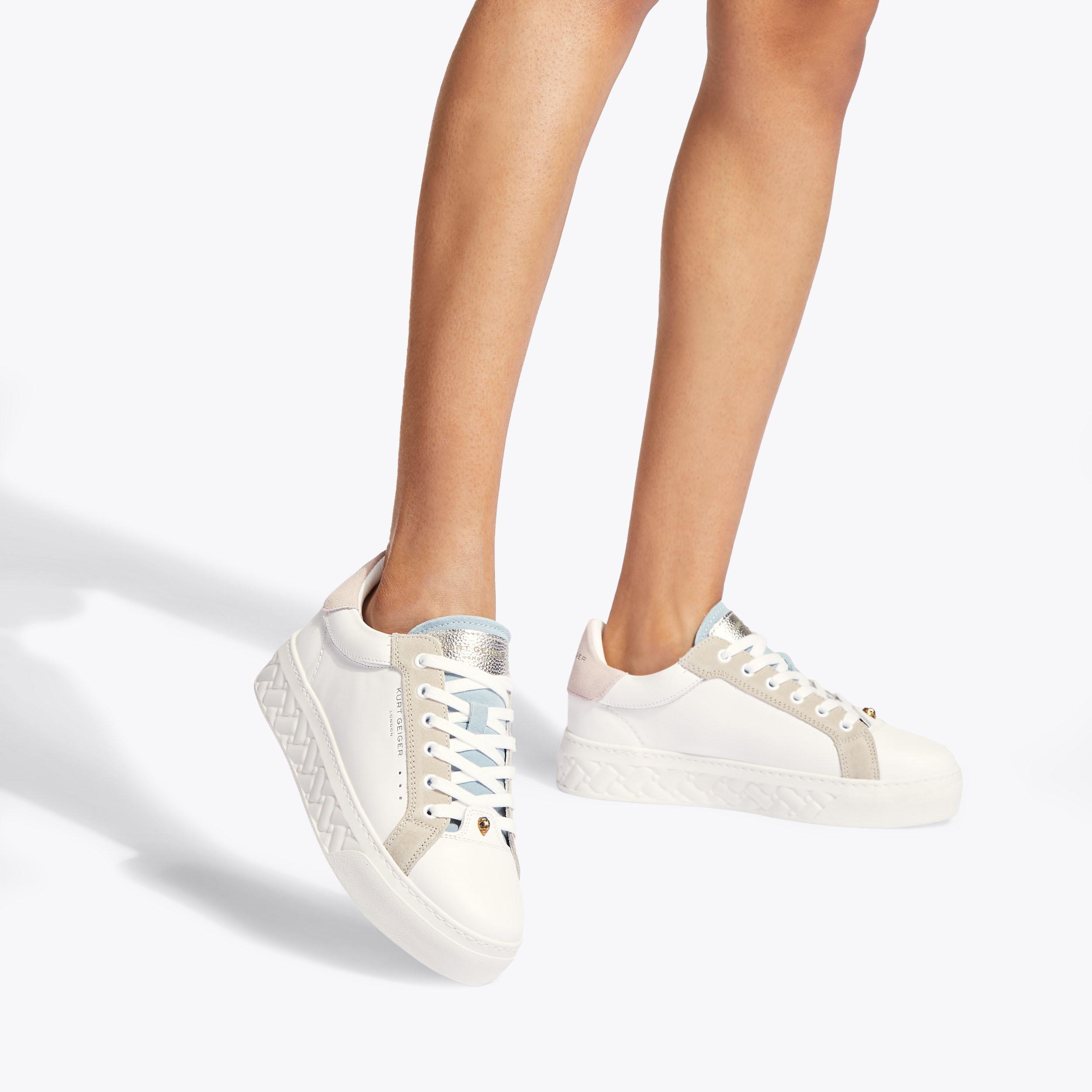 Women s Trainers Metallic White Leather Trainers Kurt Geiger Very well made.