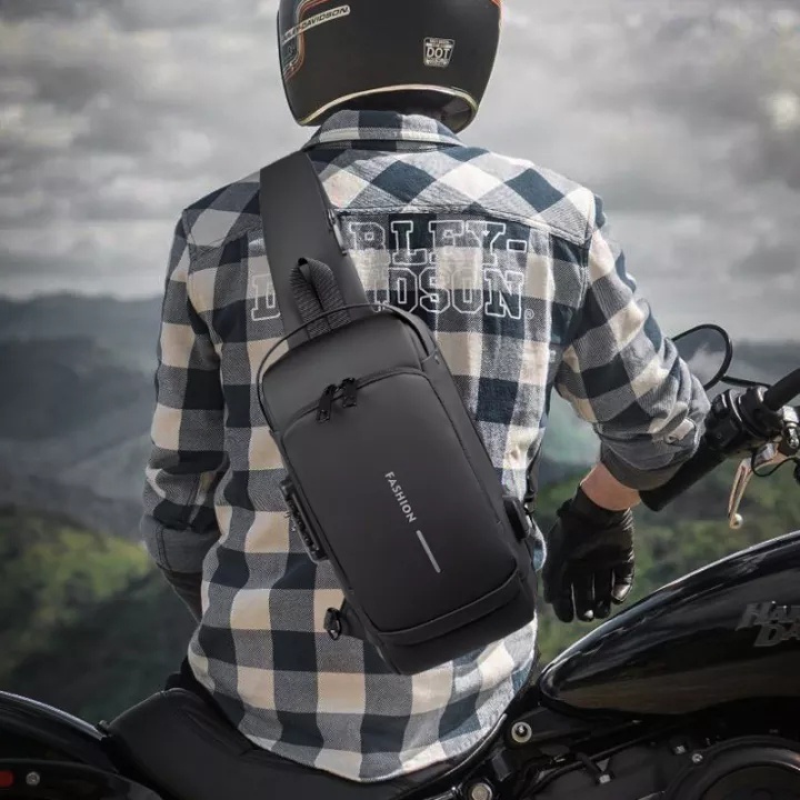 Buy Water Proof Cross Body Sling Office Bag With USB Blue Grey Very well made.
