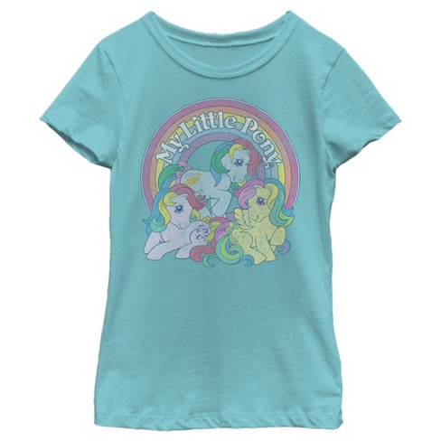 Girl s My Little Pony Retro Rainbow Friends T shirt Tahiti Blue Very well made.