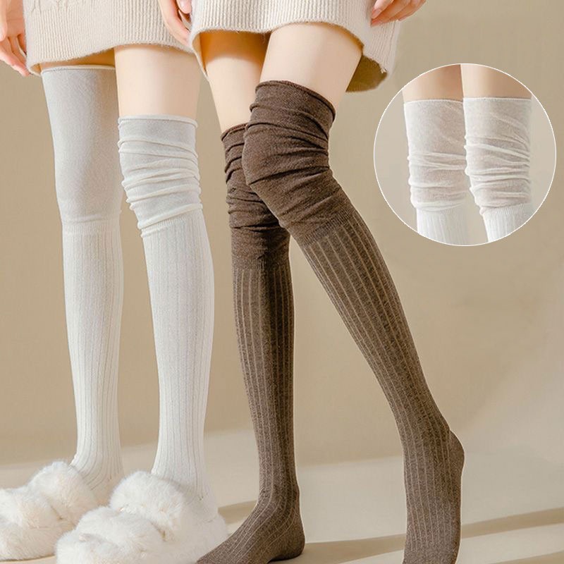 1 Pair Ribbed Thigh High Socks Solid Color Knee Thermal Versatile Very well made.