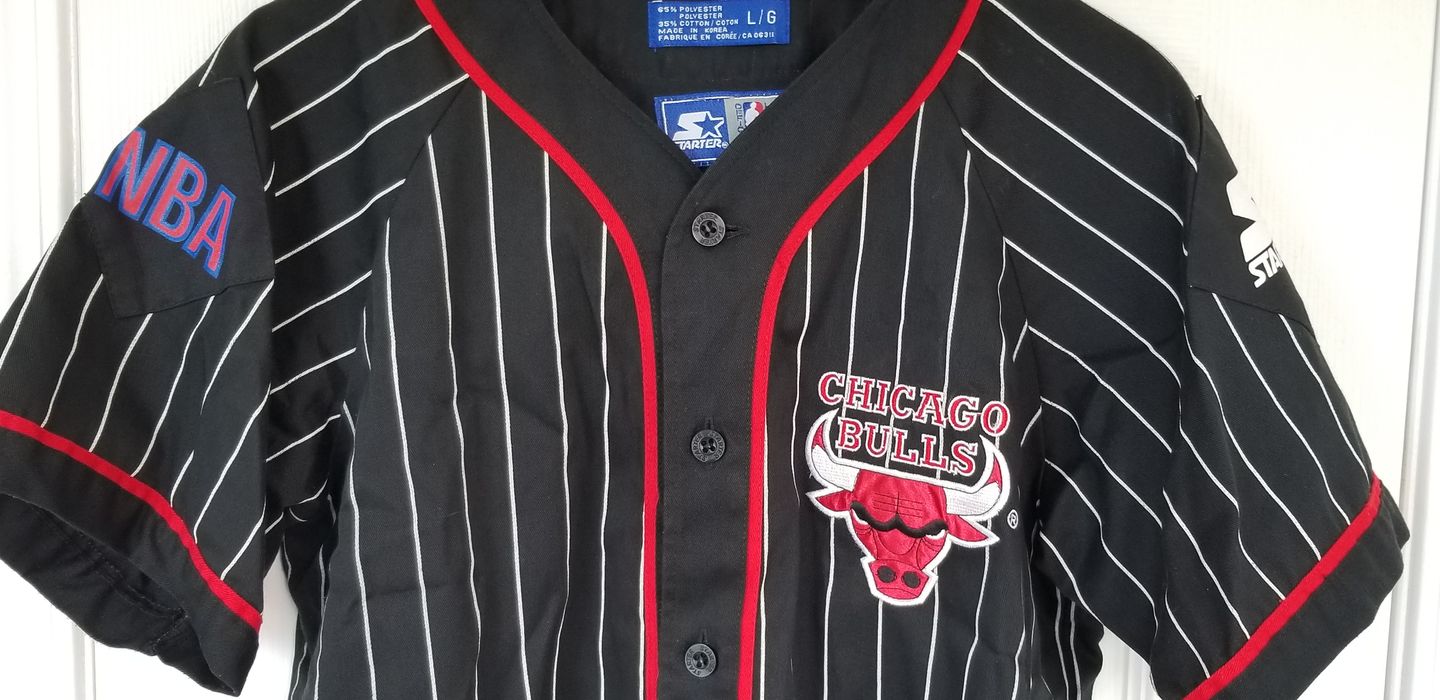 Vintage Starter Baseball Jersey Chicago Bulls Men s L 90 s White With Red Stripe Very well made.