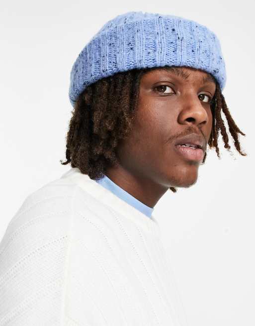 ASOS DESIGN mini fisherman ribbed beanie in baby blue with nep Very well made.