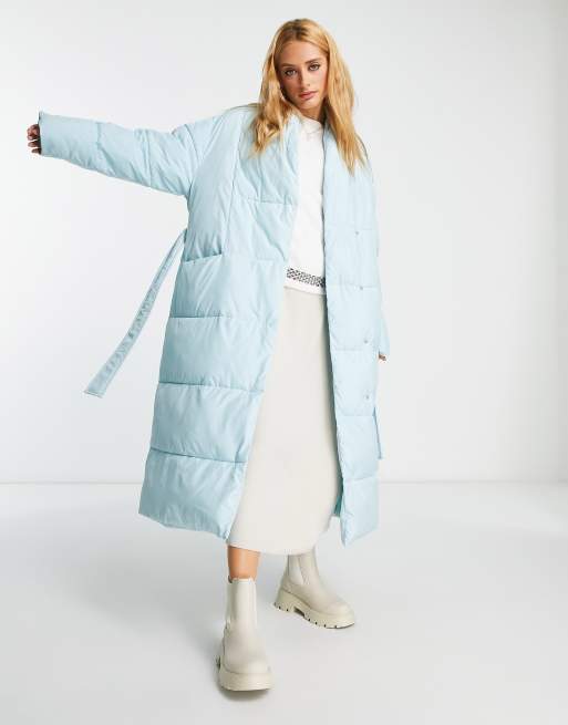 Envii padded maxi coat with belt in baby blue Very well made.