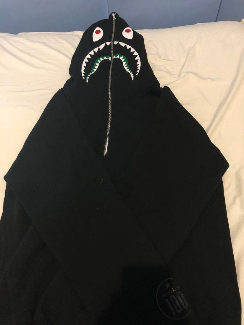 BAPE x Heineken 100 Half Zip Shark Hoodie Black Men s FW17 US Very well made.