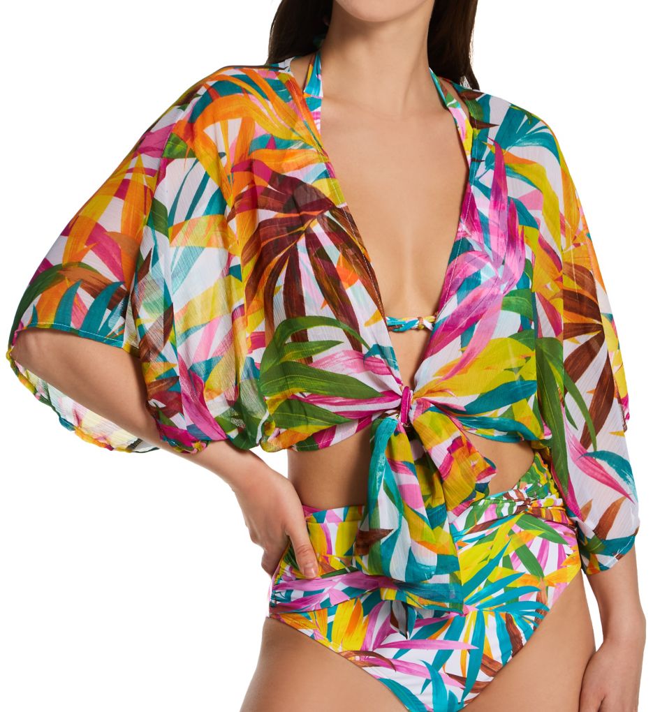 Bleu Rod Beattie Shady Days Printed Chiffon Plunge Caftan Swim Very well made.